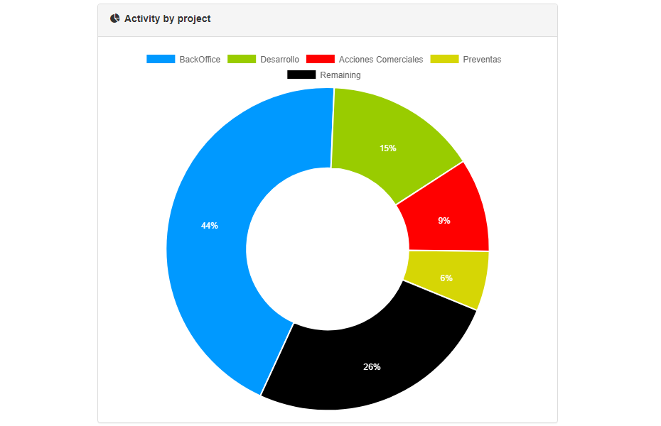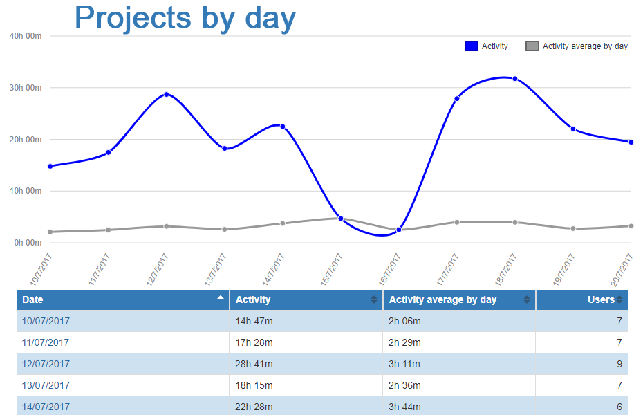 - Activity per project: with a quick glance you can see how much time has been invested in each project.