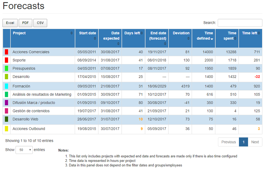 - Allows real time control of how much time has been invested in a project. You can check if results are aligned with the forecasts